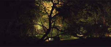 Mount fixtures high in a tree, aimed downward to mimic the effect of moonlight.
