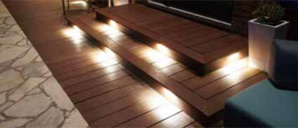 Accent steps using recessed lighting or coping lights. Step lighting provides safety and a warm atmosphere.